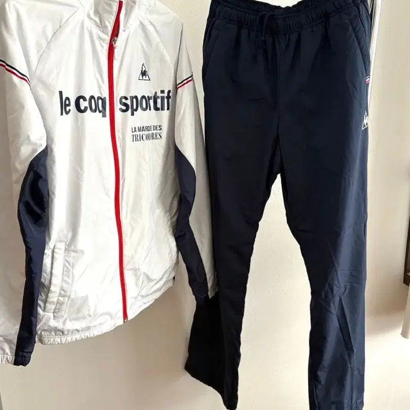 화이트와 네이비, 레드 색상의 우비 세트, le coq sportif 로고 포함. - 브랜드: le coq sportif - 상의 색상: 화이트 - 하의 색상: 네이비 - 스타일: 우비 - 로고: le coq sportif 방문해 주셔서 감사합니다. [ 사이즈 (평평하게 놓았을 때 줄자로 측정) ] ★ 자켓 ★ 가슴 너비 55cm 기장 (뒷목 옷깃 시작점부터) 70cm ★ 슬랙스 ★ 인심 74cm 몇 번 사용했지만 자켓 앞부분 등, 로고 프린트도 매우 깨끗합니다. 자켓 앞부분 오른쪽 부분에 연필이 살짝 스친 듯한 자국이 몇 군데 있습니다 (이미지 5). 거의 눈에 띄지 않습니다. 이미지를 확대해서 봐주세요. 상의와 하의 모두 안쪽은 얇고 부드러운 메쉬 소재입니다. 옷깃, 소매, 밑단도 사용감이 없이 깨끗합니다 ♪ 잘 부탁드립니다. 방한복 우비 르꼬끄 남성용 골프웨어 테니스웨어 윈드 브레이커