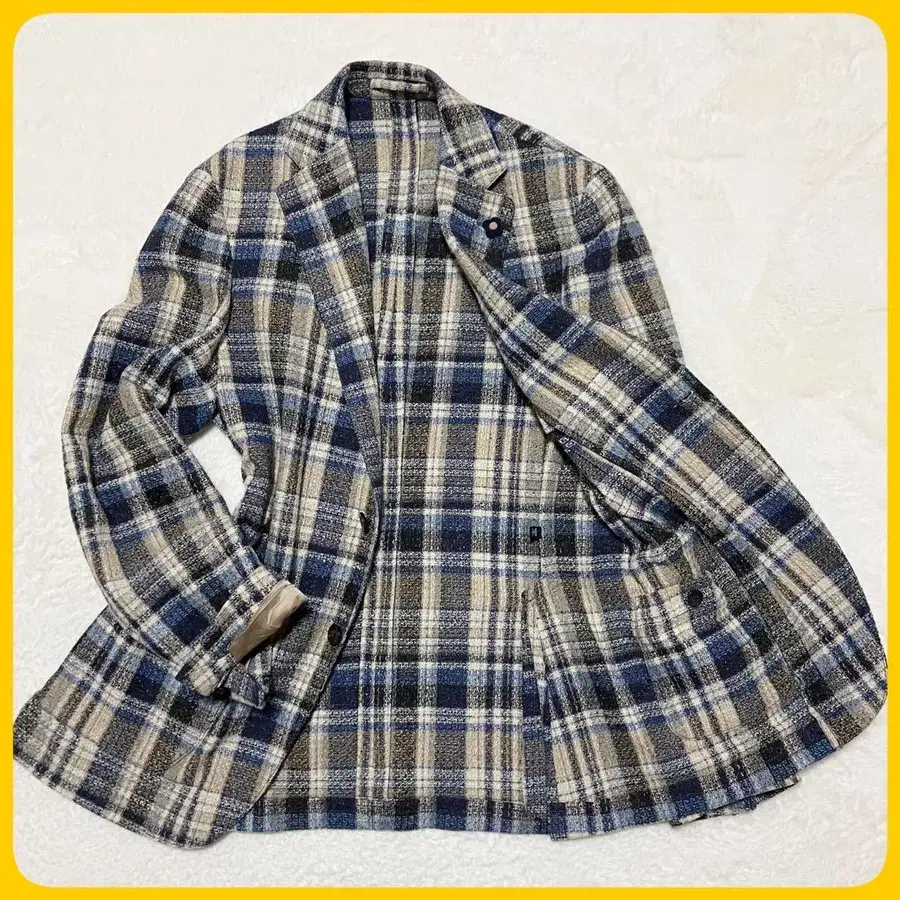 미사용급 LARDINI 테일러드 자켓 본절제 체크 46 실크