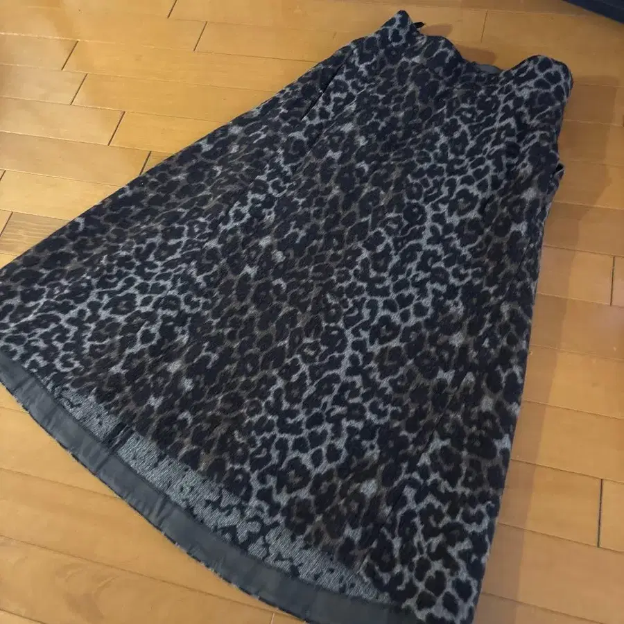 레오파드 무늬 플레어 스커트 사이드 지퍼