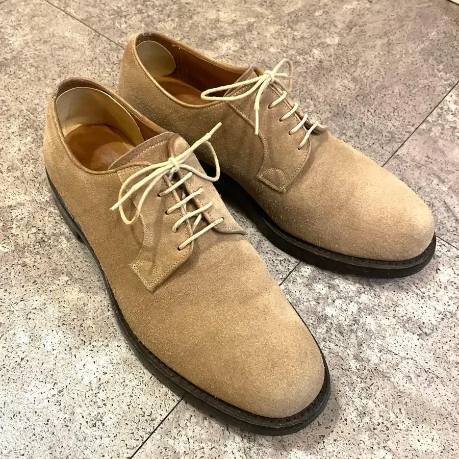 영국 신발을 대표하는 브랜드といえば 처치(Church's). 고급스러운 스웨이드 소재의 더비 슈즈입니다. 비가 많은 영국 신발다운 스톰 웰트 사양입니다. 드레스 스타일부터 캐주얼 스타일까지 지금부터의 계절에 폭넓은 스타일링에 추천합니다. 약간의 착화 흔적과 입구 등의 스크래치가 있지만 갈라짐은 없습니다. 뒤꿈치 부분에 약간의 찢김이 있어 보강 처리를 하였습니다. (참고: 3번째 사진 뒤꿈치 베이지 보강 가죽) 밑창은 충분히 남아 있어 계속 신으실 수 있습니다. 10점 만점에 8점 정도로 눈에 띄는 흠집이나 얼룩이 적은 양호한 상품입니다. 중고품이므로 이해하신 후 구매 부탁드립니다. 소재/밑창: 송아지 가죽 100%, 러버 100% 겉감: 송아지 스웨이드 100% 안감: 송아지 가죽 100% 사이즈/UK 사이즈 8 (일본 사이즈 27cm는 참고용입니다) ※ 아웃솔 전체 길이 (약 30.0cm) 와이즈 폭 (약 11cm) 본인이 가지고 계신 가죽 신발을 참고해 주세요. ※ 상자, 슈트리는 부속되지 않습니다. 신발만 출하됩니다. ⚠️ 중고품입니다. 이 상품은 중고품입니다. 이해하신 후 구매 부탁드립니다. 상품에 완벽함을 추구하시는 분은 새 상품을 정품 판매점에서 구매하시는 것을 검토해 주시기 바랍니다.