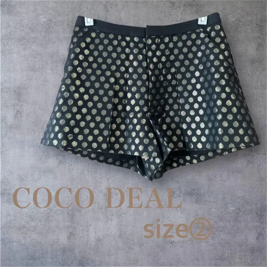 수많은 상품 중에서 열람해 주셔서 감사합니다 ♪ ✨❤︎ 하단↓↓에서 특별 정보 확인하세요 ❤︎✨ ✎ ______________ 혹시 찾고 계신 상품이 있을까요!?⸝⋆ ⇩⇩⇩ #Hachi ★ shop ✎ ______________ ✰ 즉시 결제 OK! ✰ ✰ 무료배송! ✰ ✰ 익명 배송 ✰ ⭐️ 골드 도트 무늬가 시선을 사로잡습니다! ⭐️ ⭐️ 양쪽 사이드 포켓 있음. ⭐️ ⭐️ 안감 있음 ⭐️ ※ 뒷면 포켓은 페이크입니다. 정가: 8400엔 ✎ ______________ ⚪︎ 상품 COCO DEAL / 코코딜 숏팬츠 ⚪︎ 색상 블랙 / 골드 ⚪︎ 사이즈 2 (M 상당) - 실측 - 허리: 약 62cm ~ 64cm 힙: 약 88cm ~ 90cm 총길이: 약 33cm 인심: 약 6cm ※ 개인 측정으로 인해 약간의 오차가 있을 수 있습니다. 양해 부탁드립니다. ⚪︎ 상태 새상품, 미사용입니다. (택 포함) 자택 보관이므로 이해하신 후 구매 부탁드립니다. ‎ ٭ ☾ ·̩͙⋆ ★ ·̩͙ ✧‬‪ * ٭ ☾ ·̩͙⋆ ★ ·̩͙ ✧‬‪ * ٭ ☾ ·̩͙⋆ ★ ·̩͙ ✧‬‪ * ٭ ☾ ·̩͙⋆ ★ · ✧ 묶음 할인 ✧ 총 금액에서 2점 동시 구매 - 200엔 할인 3점 동시 구매 - 300엔 할인 ※ 총 금액이 1000엔 이하일 경우 100엔 할인됩니다. ✧ 팔로우 할인 ✧ 100엔 할인 ※ 상품 1개당 1000엔 이하 상품, 총 금액이 1000엔 이하에는 적용되지 않습니다. ✰ 묶음 할인과 팔로우 할인은 병용 가능합니다! ※ 세일 상품, 희망 가격으로 댓글을 통해 가격 인하된 상품은 대상에서 제외됩니다. ※ 할인 협상은 댓글로 대응하고 있습니다. ※ 댓글로 소통 중이더라도 먼저 구매하신 분이 우선입니다. ‎ ٭ ☾ ·̩͙⋆ ★ ·̩͙ ✧‬‪ * ٭ ☾ ·̩͙⋆ ★ ·̩͙ ✧‬‪ * ٭ ☾ ·̩͙⋆ ★ ·̩͙ ✧‬‪ * ٭ ☾ ·̩͙⋆ ★ ·̩͙ 사이즈 - M