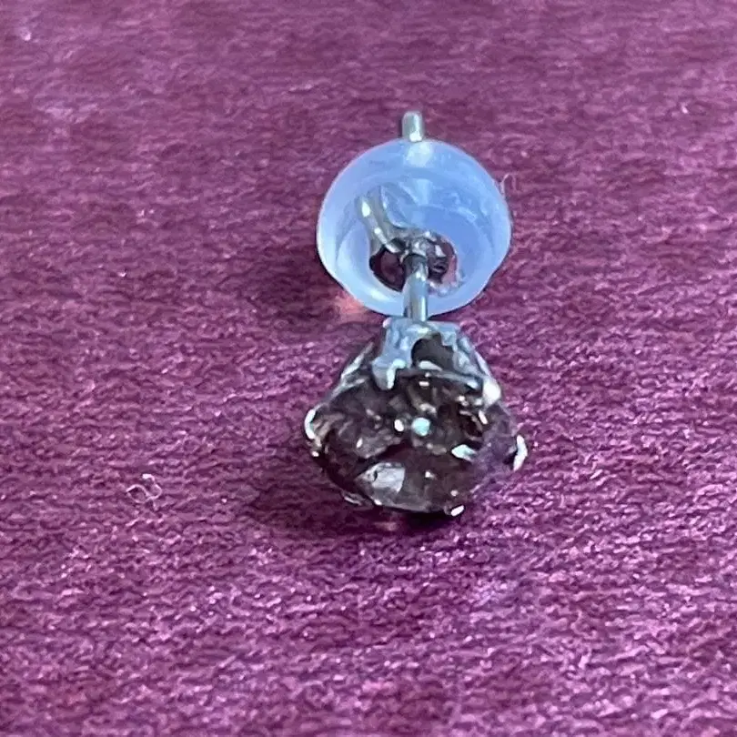 브라운 라운드 컷 플라티나 스터드 귀걸이 7mm