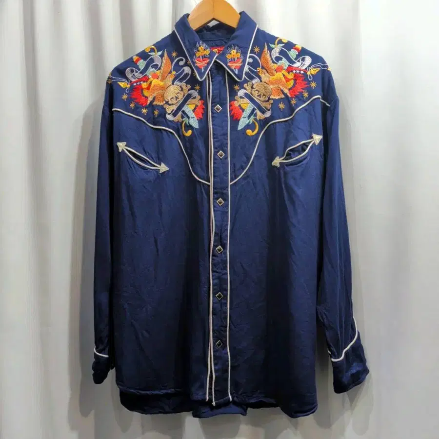 새상품급 크림 소다 레이온 웨스턴 셔츠 금색 택 XL 상당