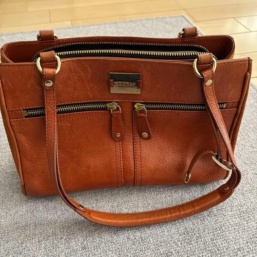 오렌지색 핸드백, 외부 포켓 2개 부착
