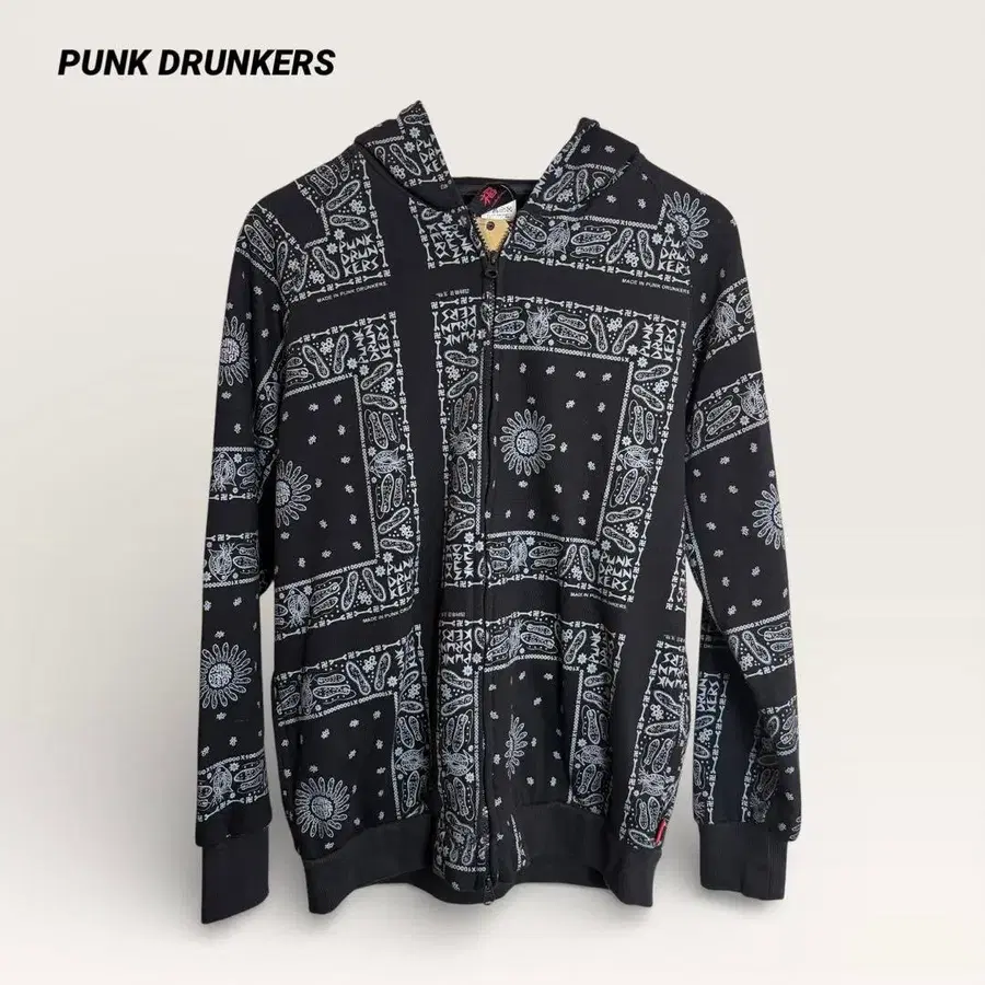 PUNK DRUNKERS 올 패턴 집업 후드티 블랙 반다나 패턴