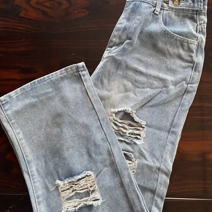 라이트 블루 데미지 데님 팬츠 여성용