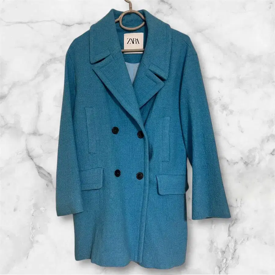 ZARA 파랑 더블 브레스트 체스터 코트