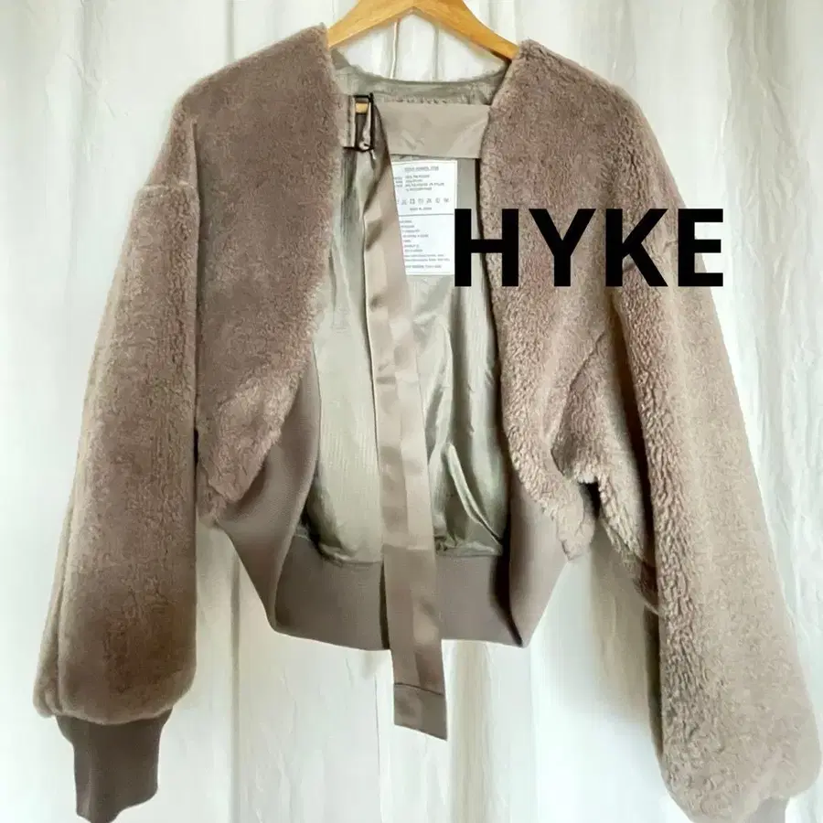 HYKE 하이크 카키 보아 자켓 크롭 기장