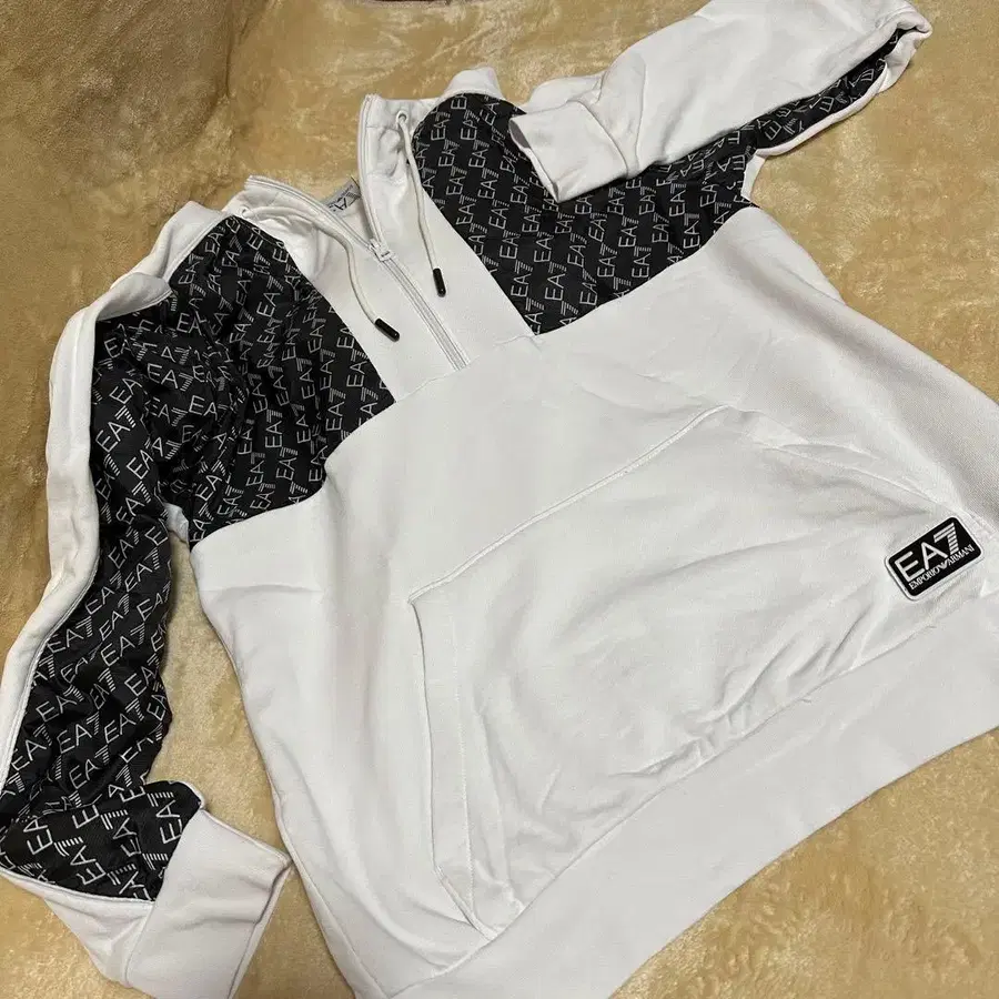 EA7 엠포리오 아르마니 그래픽 패턴 x 무지 하프 지퍼 후드티