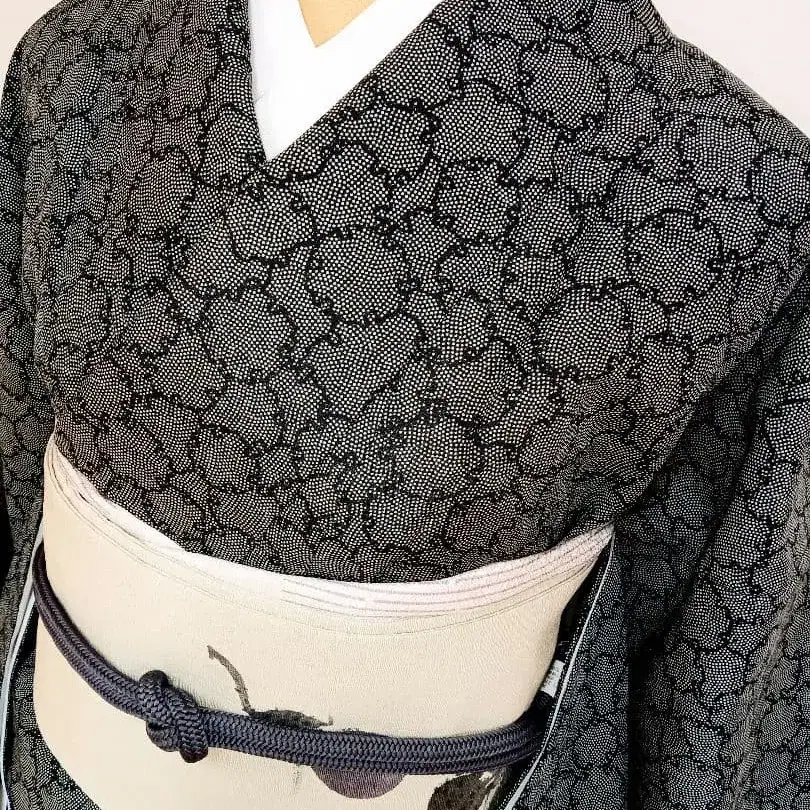 세탁 가능한 에도 코몬 흑먹색 눈꽃 무늬 이중 기모노 M 사이즈