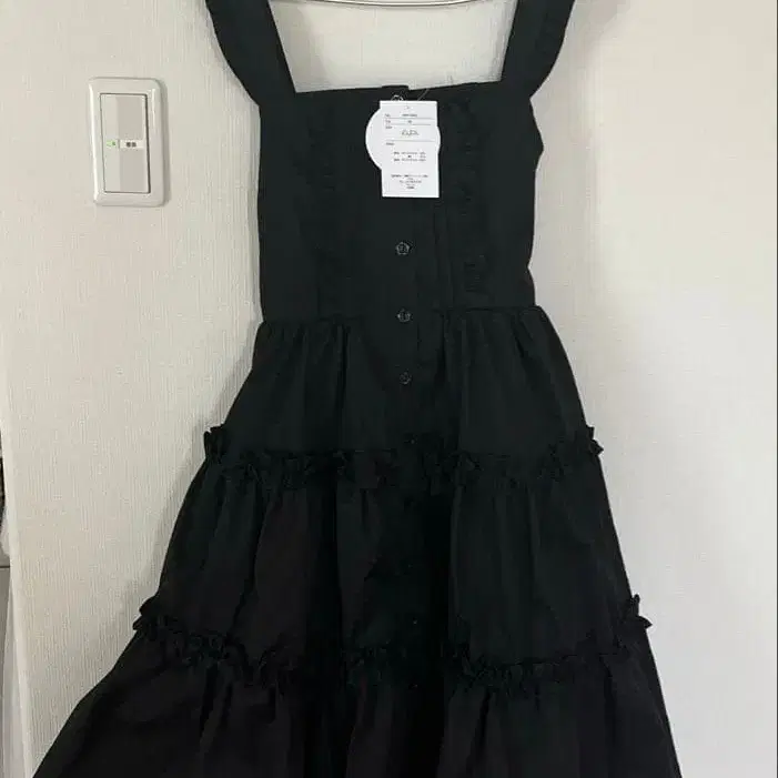 L 사이즈 시마무라 마시로 아리스 프론트 오픈 티어드 오버롤 스커트 블랙