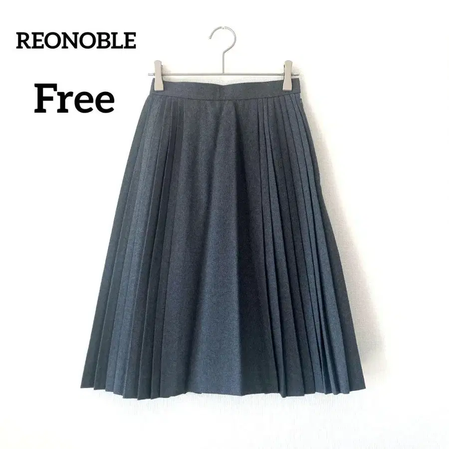 레오노블 플리츠 스커트 그레이 무릎 기장 허리밴딩 모 100%