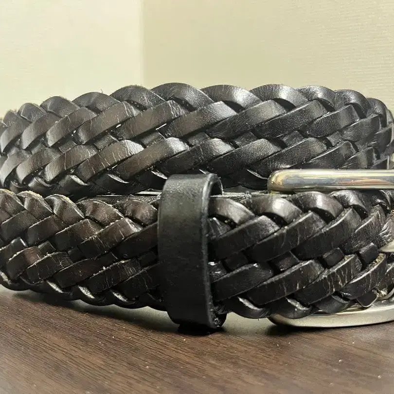 Anderson's 블랙 가죽 웨빙 벨트 80cm 폭 2.8cm