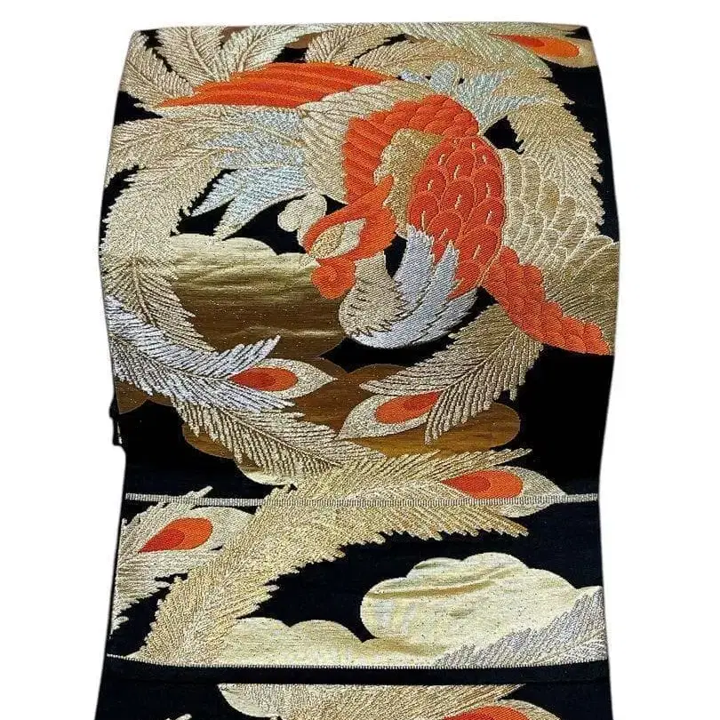 122911 화려한 꽃무늬와 새 자수 후쿠로 오비
