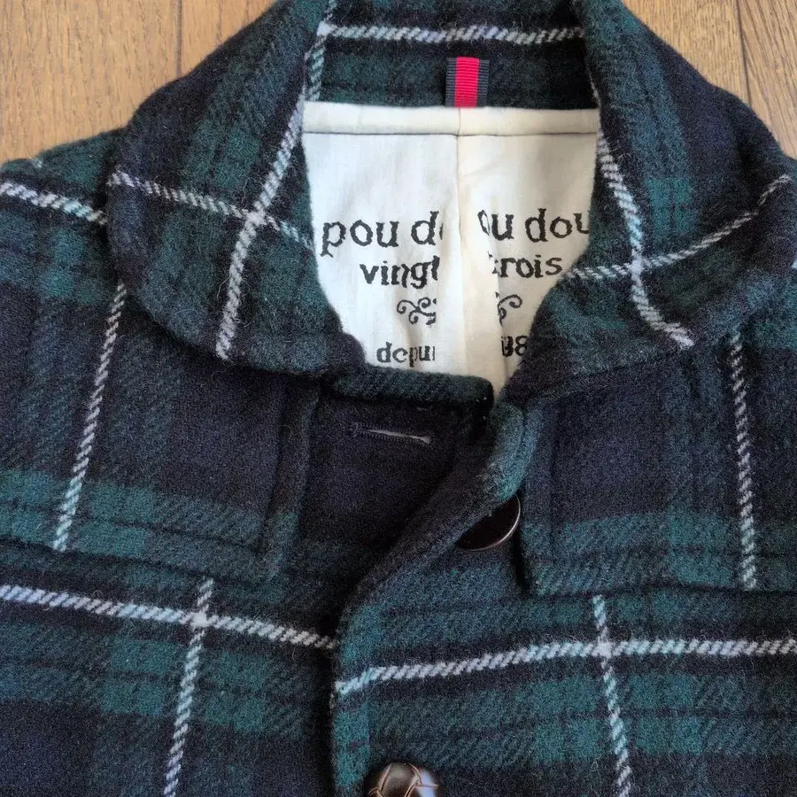 pou dou dou 그린 계열 체크 코트
