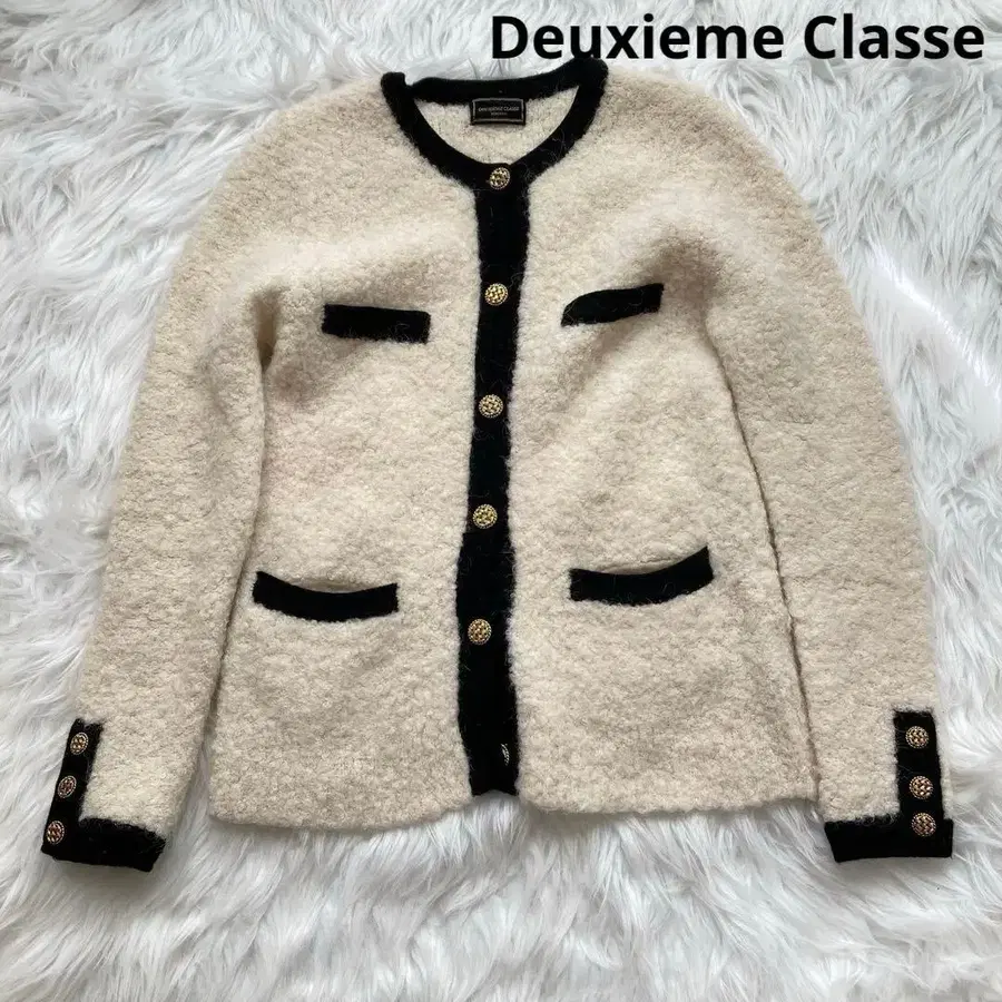 두지엠 클라세 알파카 혼방 배색 니트 가디건 골드 버튼 아이보리