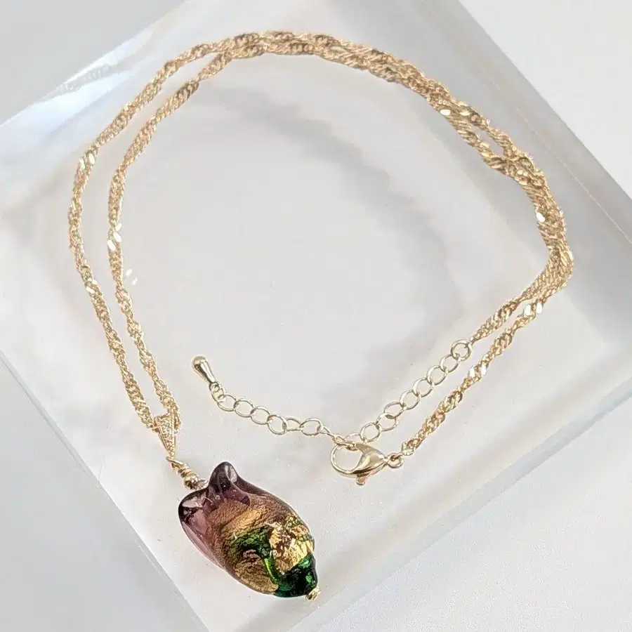 [ 이탈리아제 ] 베네치안 유리 목걸이 퍼플 핑크 베이스