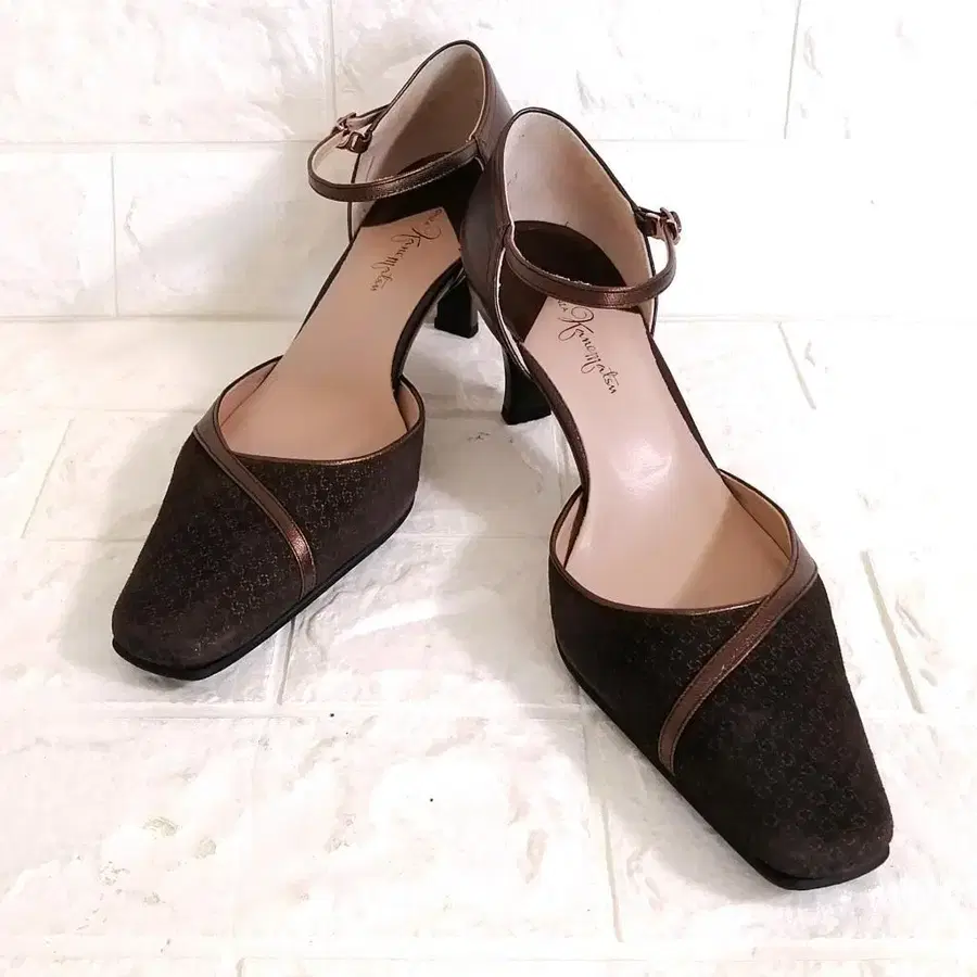 GINZA Kanematsu 올 패턴 스웨이드 스트랩 펌프스