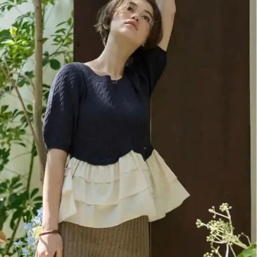 로완뉴이 케이블 퍼프 프릴 니트 네이비