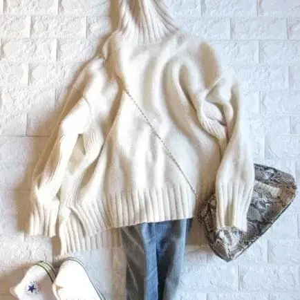 적당한 볼륨감이 있는, 넉넉한 하이넥 풀오버입니다.