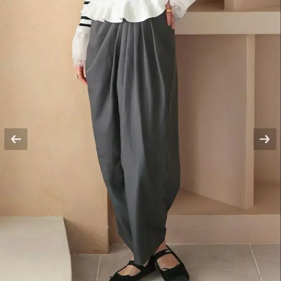 엘레강트한 드레이프가 눈길을 사로잡는, 입체적인 실루엣이 화려하고 모드 느낌이 감도는 드레이프 팬츠.