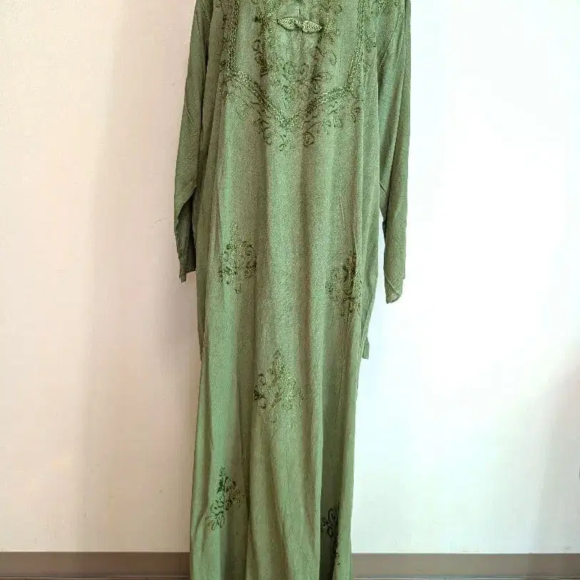 인도 자수 롱 쿠르타 드레스 올리브 그린 새상품 택 포함