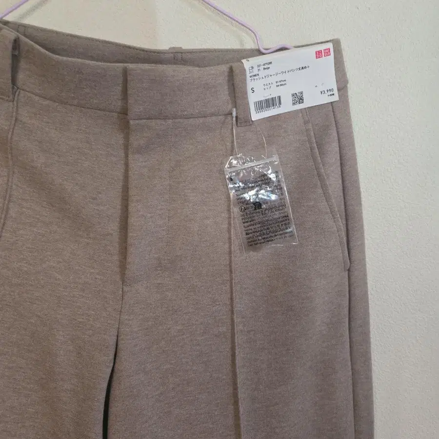 미사용 새상품 UNIQLO 베이지 블랙 저지 와이드 팬츠 S 기장 길게