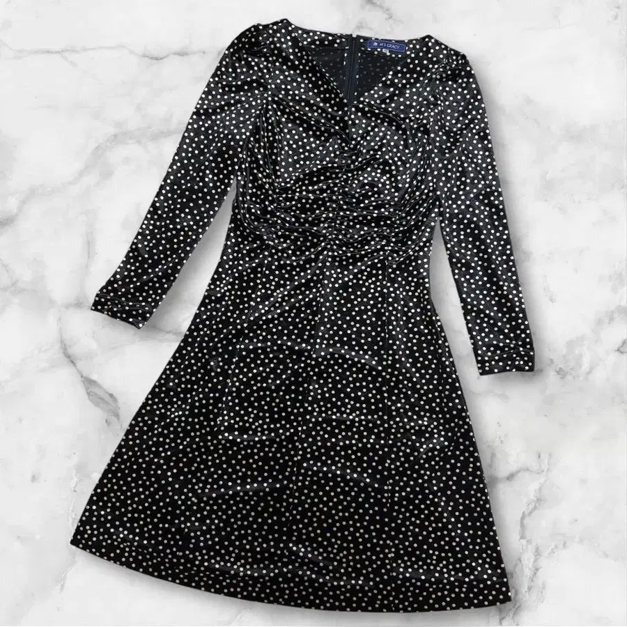 [레트로] 엠즈 그레이시 플레어 원피스 도트 벨로아 40 A라인