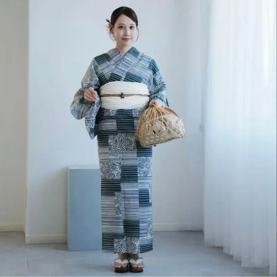 유카타 단품 모던 패턴 그린 계열 우타타네