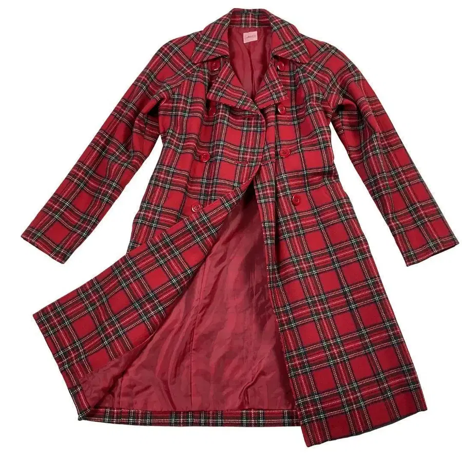 타탄 체크 체스터 코트 더블 브레스트 S 사이즈