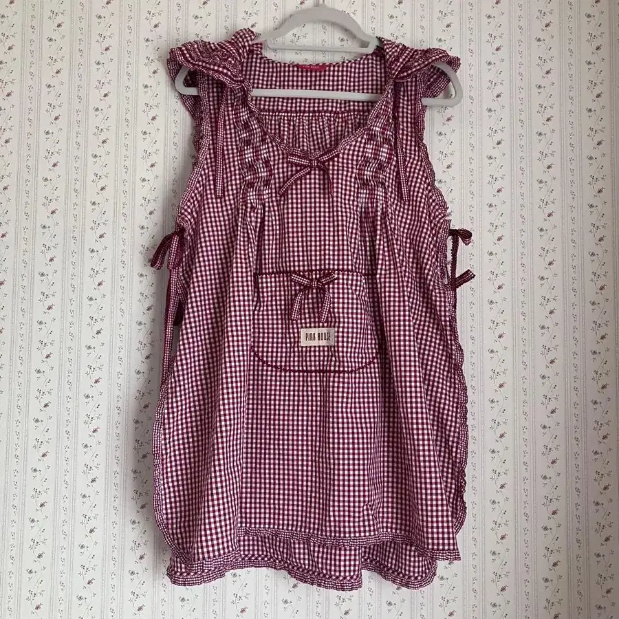 핑크하우스 깅엄 체크 후드 부착 탭 빨간색