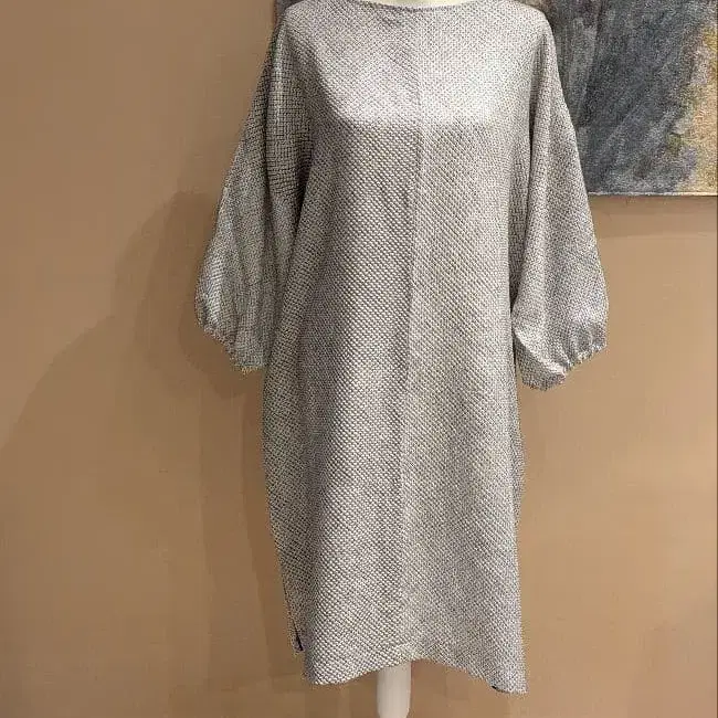 순수 실크 총 조임 화이트 x 블랙 기모노 리메이크 풀오버 원피스
