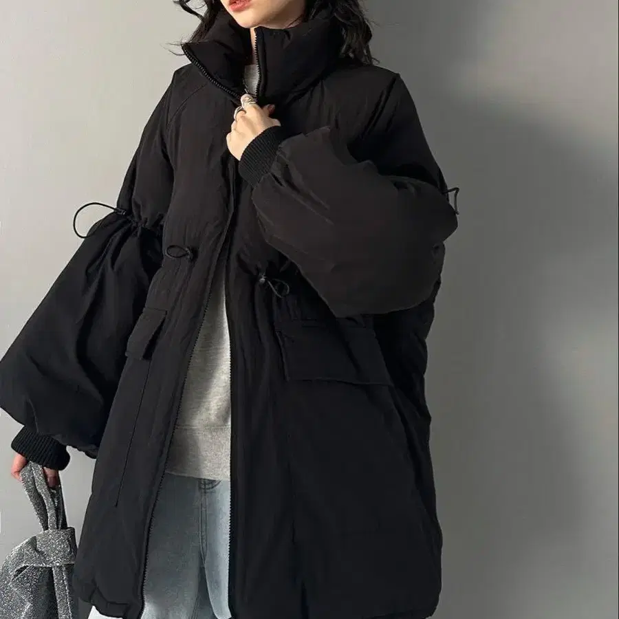 클래식 엘프 스탠드 카라 드로스트 디자인 소매 볼륨 충전솜 오버 사이즈 블루종 사이즈 - L 컬러 - 블랙 택 포함 미사용 새상품 컴팩트하게 접어 압축하여 발송해 드립니다.