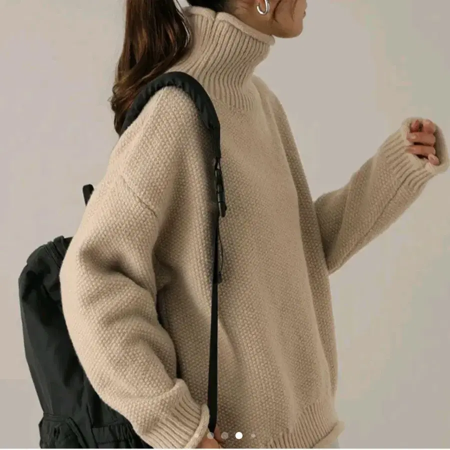 HUG.U 하그유 사슴 무늬 니트 터틀넥 L 사이즈 애쉬 베이지