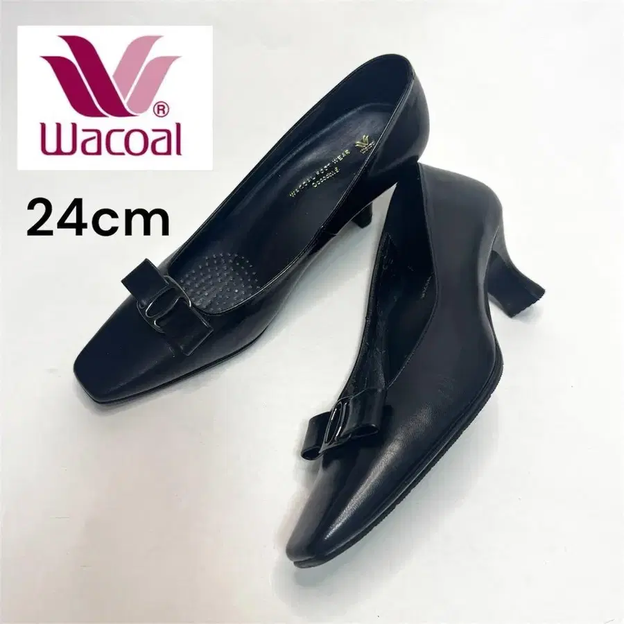 와코루 펌프스 스퀘어토 블랙 리본 버클 24cm