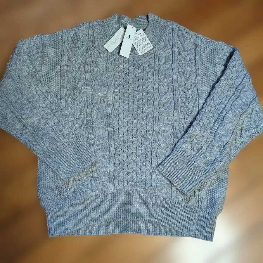그레이 케이블 짜임 긴팔 니트 스웨터