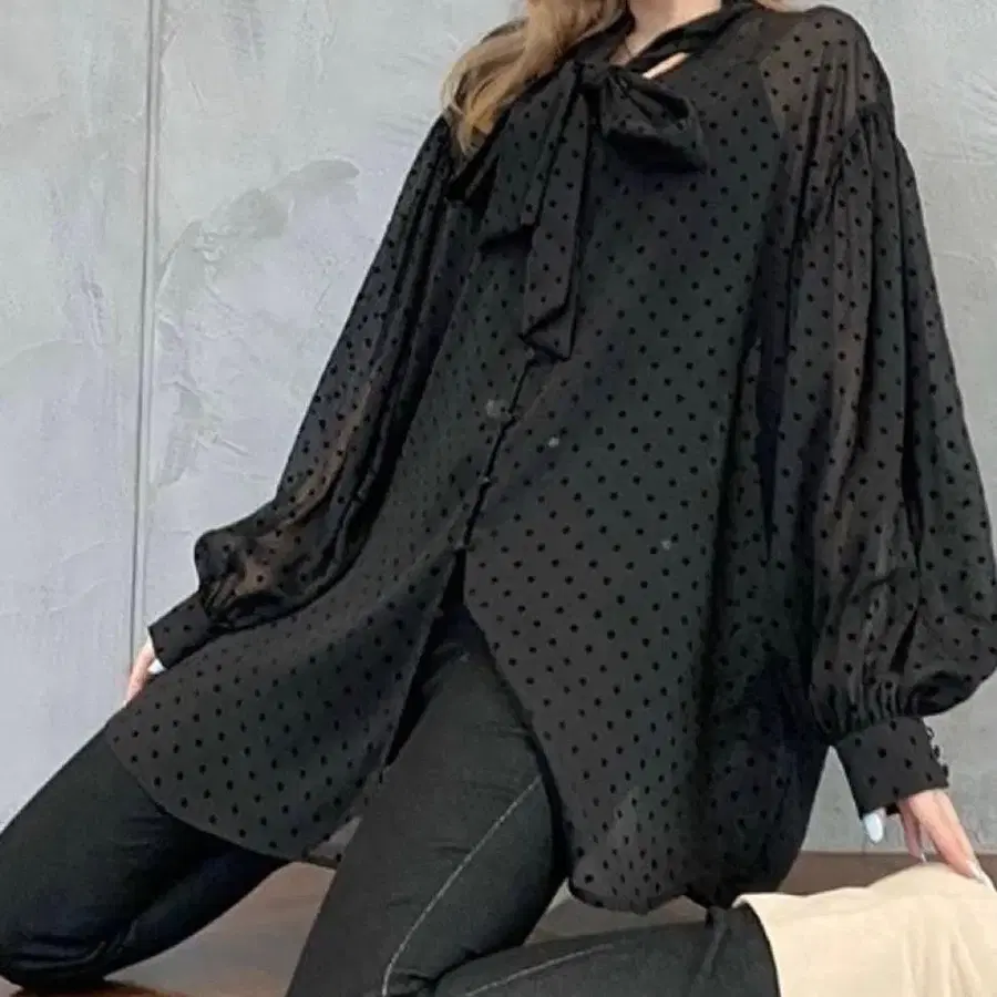 eimy istoire 플로키 도트 리본 오버 셔츠