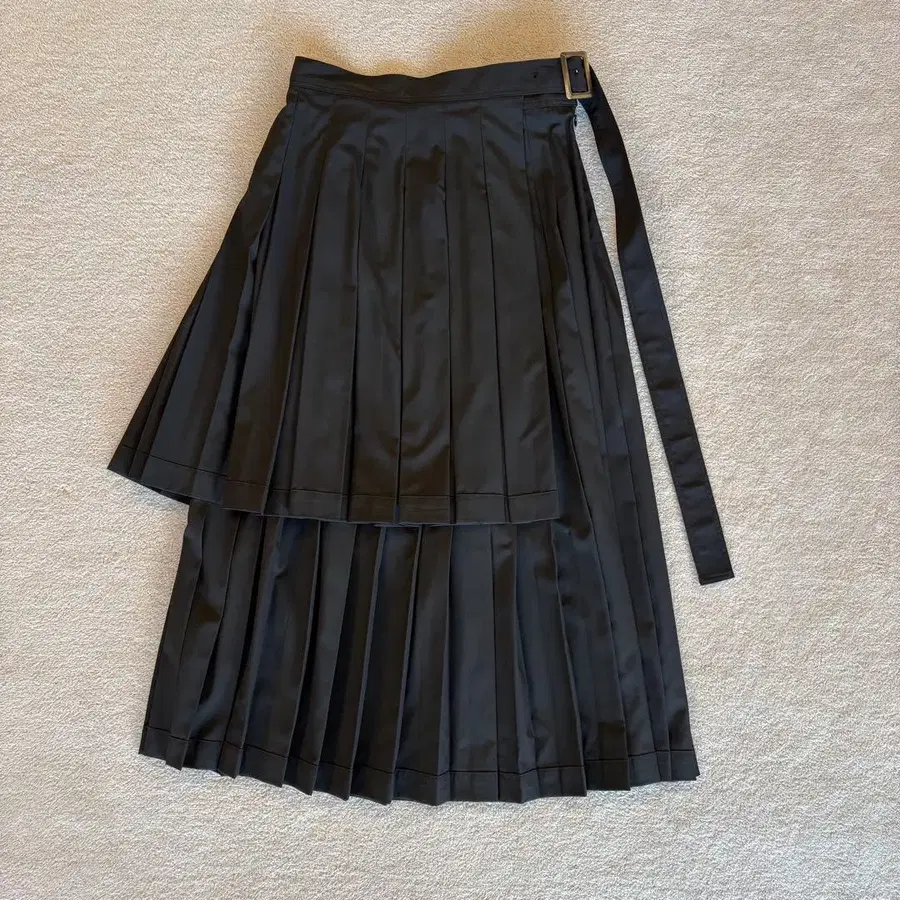 르쉘블루 블랙 플리츠 롱 스커트 벨트 포함 38