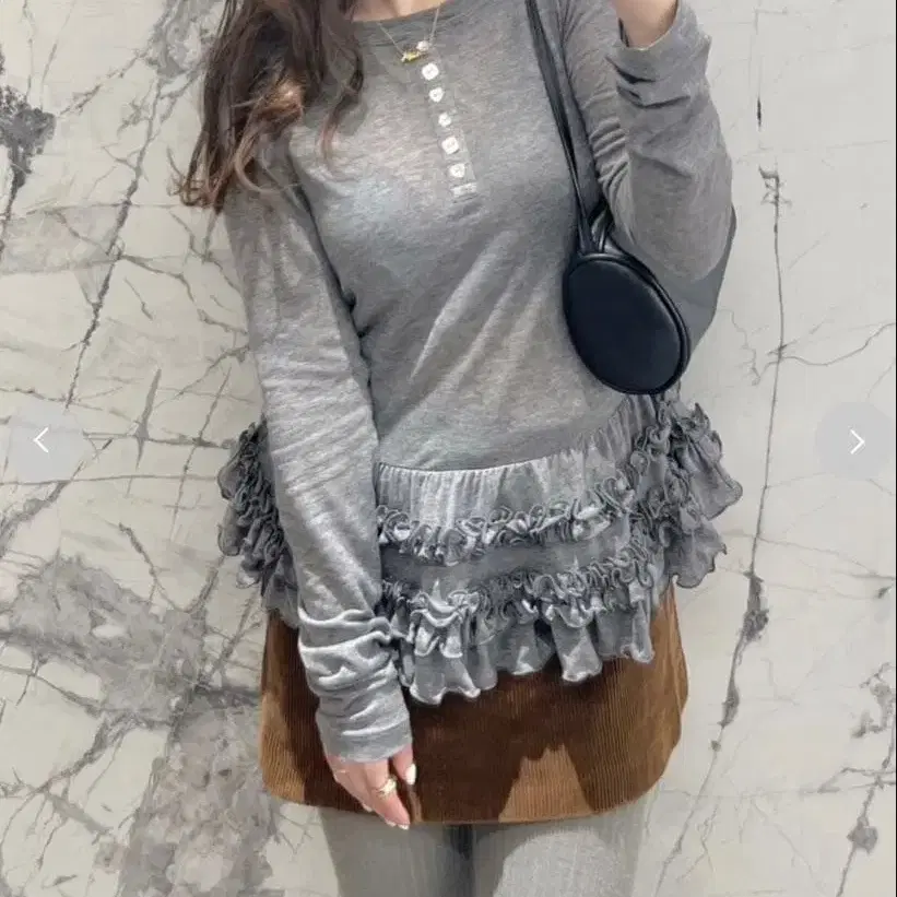 [ 새상품 ] FUR FUR 소매 프릴 저지 상의 그레이