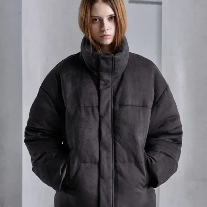 [ CLEL ] 볼륨 하이넥 숏 패딩 자켓 차콜 그레이 S