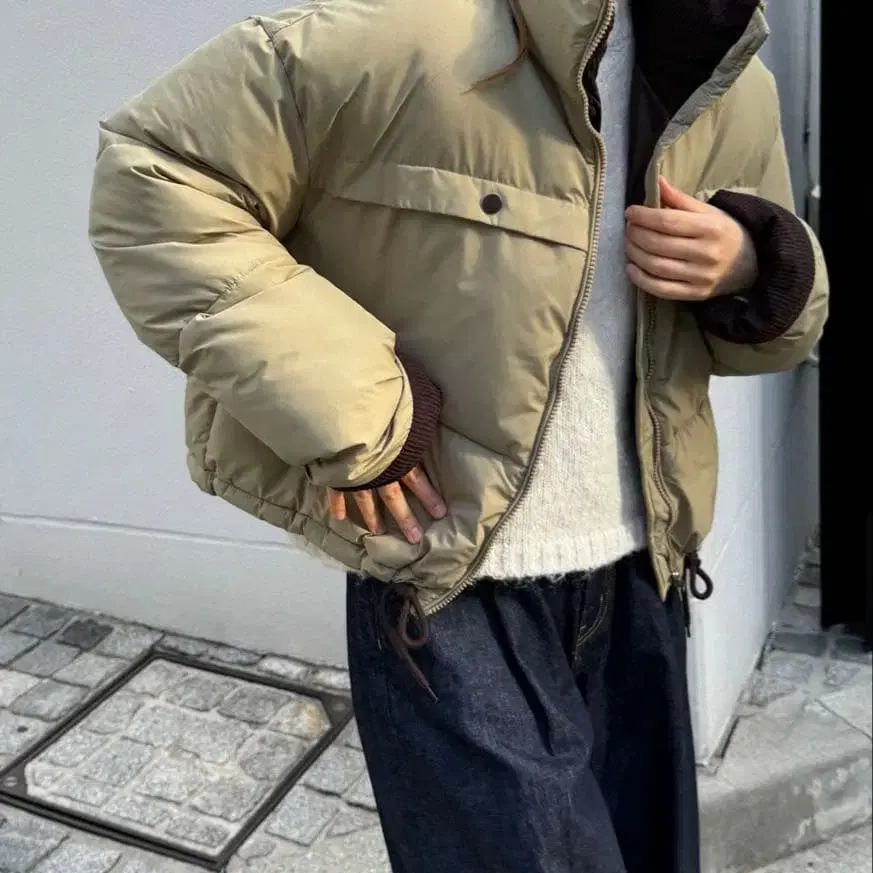 레이키 박 배색 퍼 숏 블루종