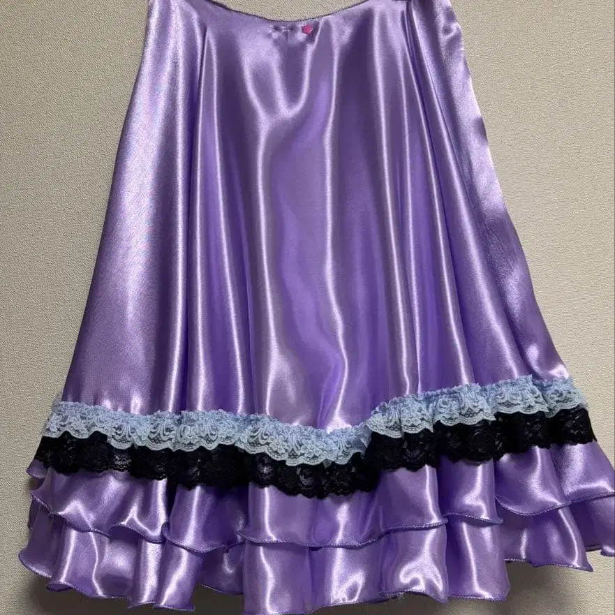 [ 다카라즈카 여역풍 부드러운 등나무색 새틴 미디 기장 연습용 스커트 ]