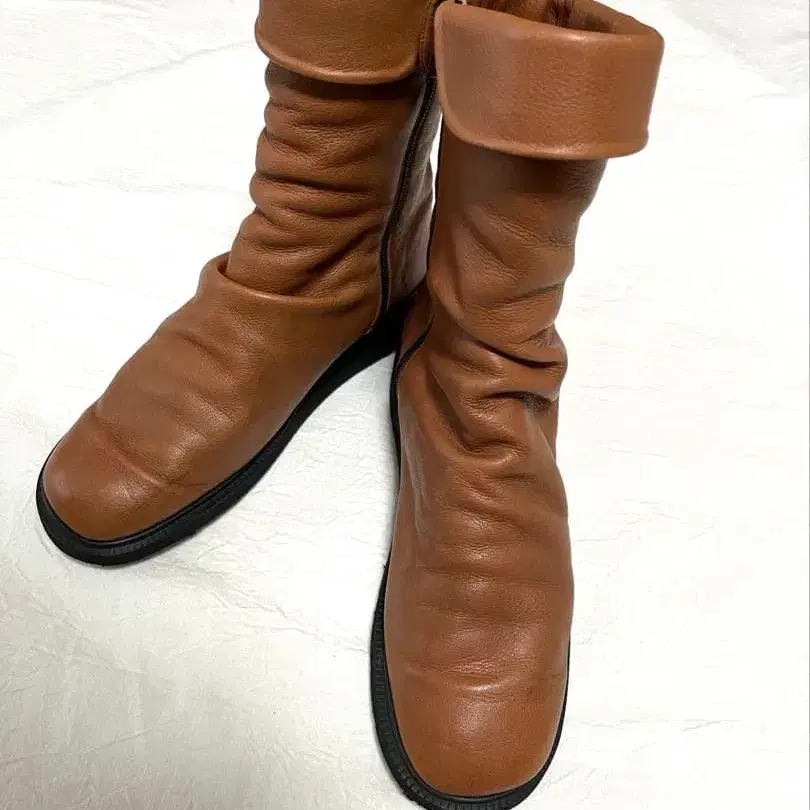24.5cm 브라운 가죽 부츠 지퍼 포함