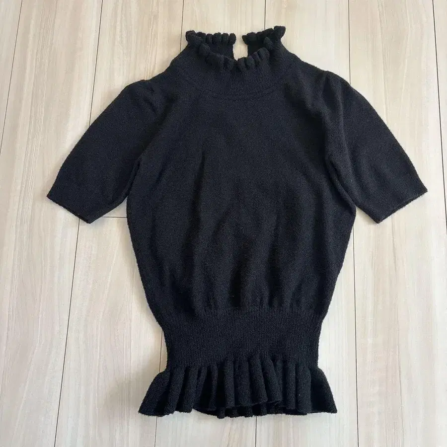 michellMacaron 미셸 마카롱 프릴 니트 반팔 블랙