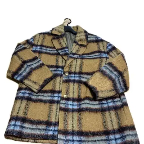 베이지 계열 체크 오버 사이즈 체스터 코트