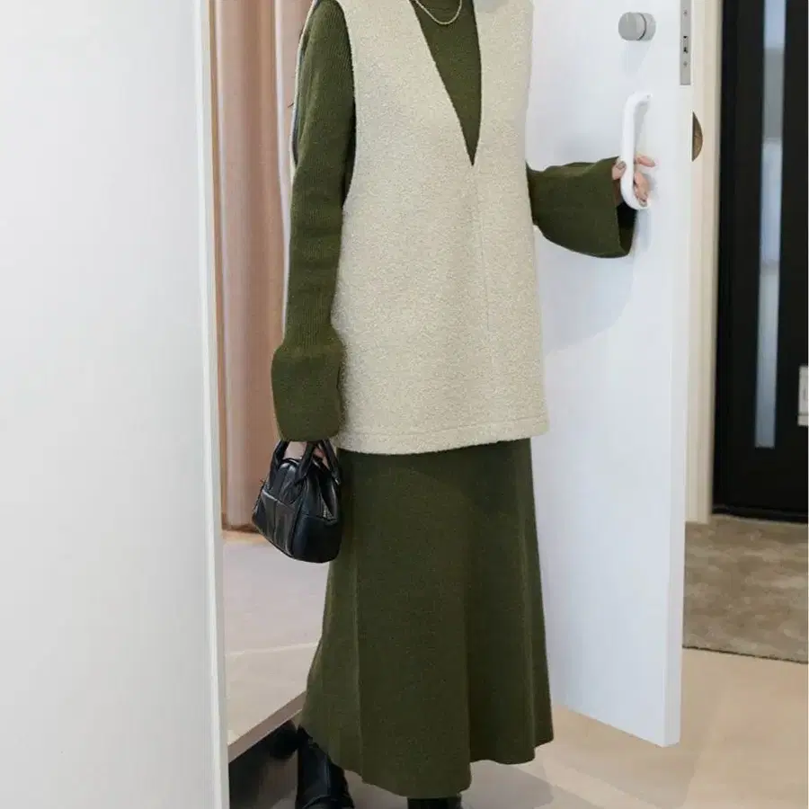올리브 그린 니트 셋업