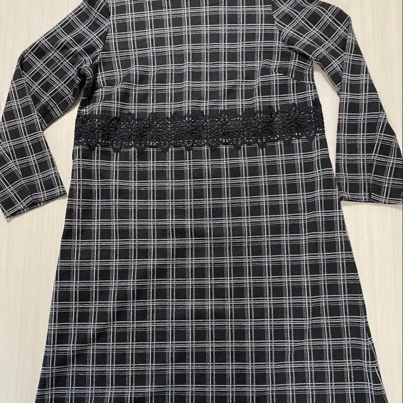 JUNKO SHIMADA 체크 무늬 레이스 장식 긴팔 원피스 L 사이즈