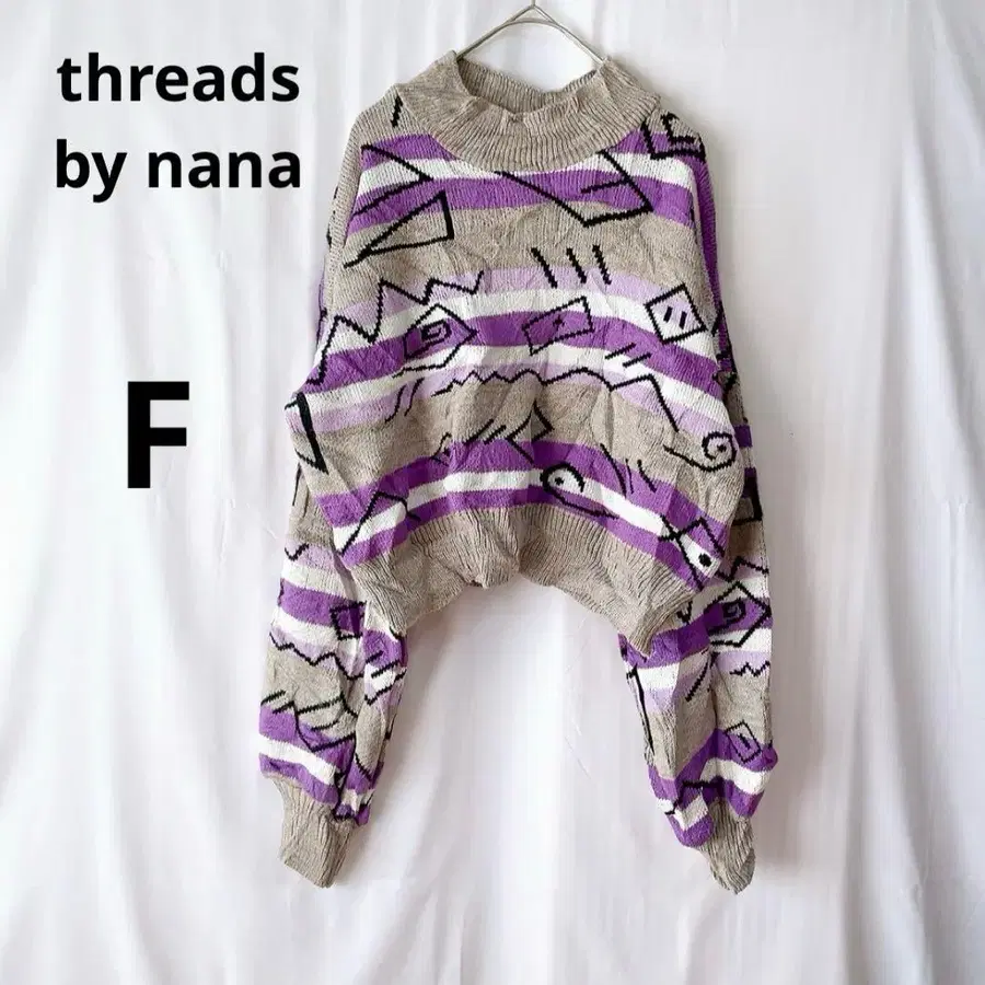 자동 번역되었어요. 원문보기기하학 패턴의 오버 사이즈 니트, 베이지와 보라색의 배색이 특징.