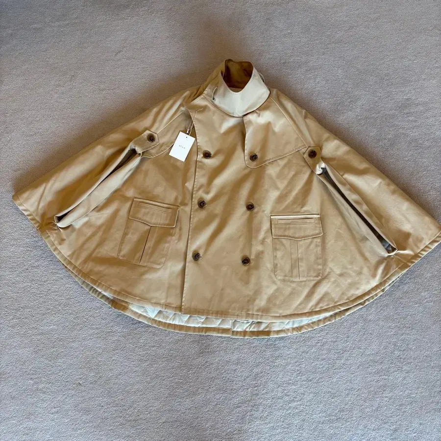 [새상품] eLLa 에라 베이지 더블 브레스트 판초 트렌치코트