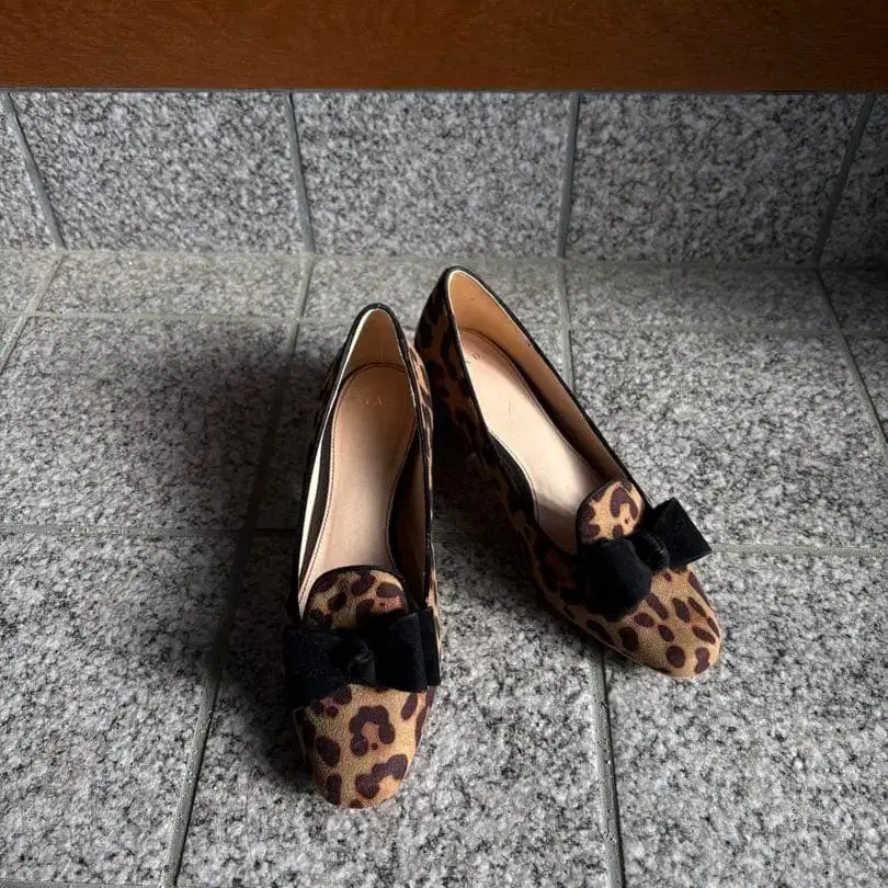 RANDA 레오파드 무늬 리본 포함 하이힐 L